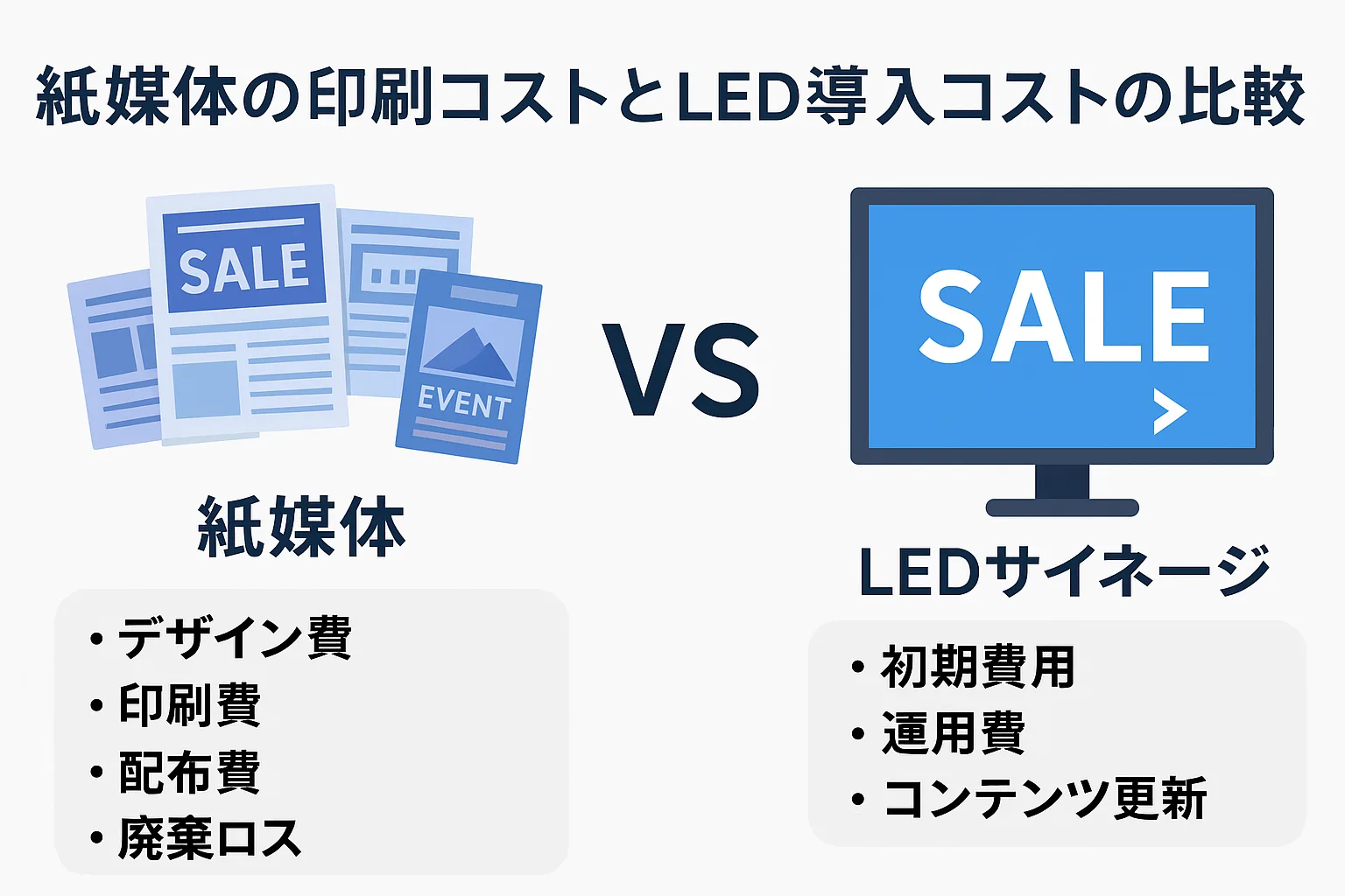 デジタルサイネージなら、画像や動画を差し替えるだけで即座に反映でき、印刷代・人件費を削減できます。 - 見た目の印象が現代的で清潔感がある