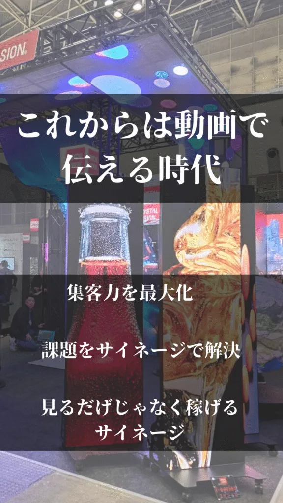 タッチパネルやセンサー連動、AR(拡張現実)・VR(仮想現実)と組み合わせたLEDビジョンが登場しています。例えば、「画面に触れるとクーポン画面が表示される」「歩いて近づくと商品説明が出る」など、来店者参加型の演出が可能です。 CRYSTAL VISION